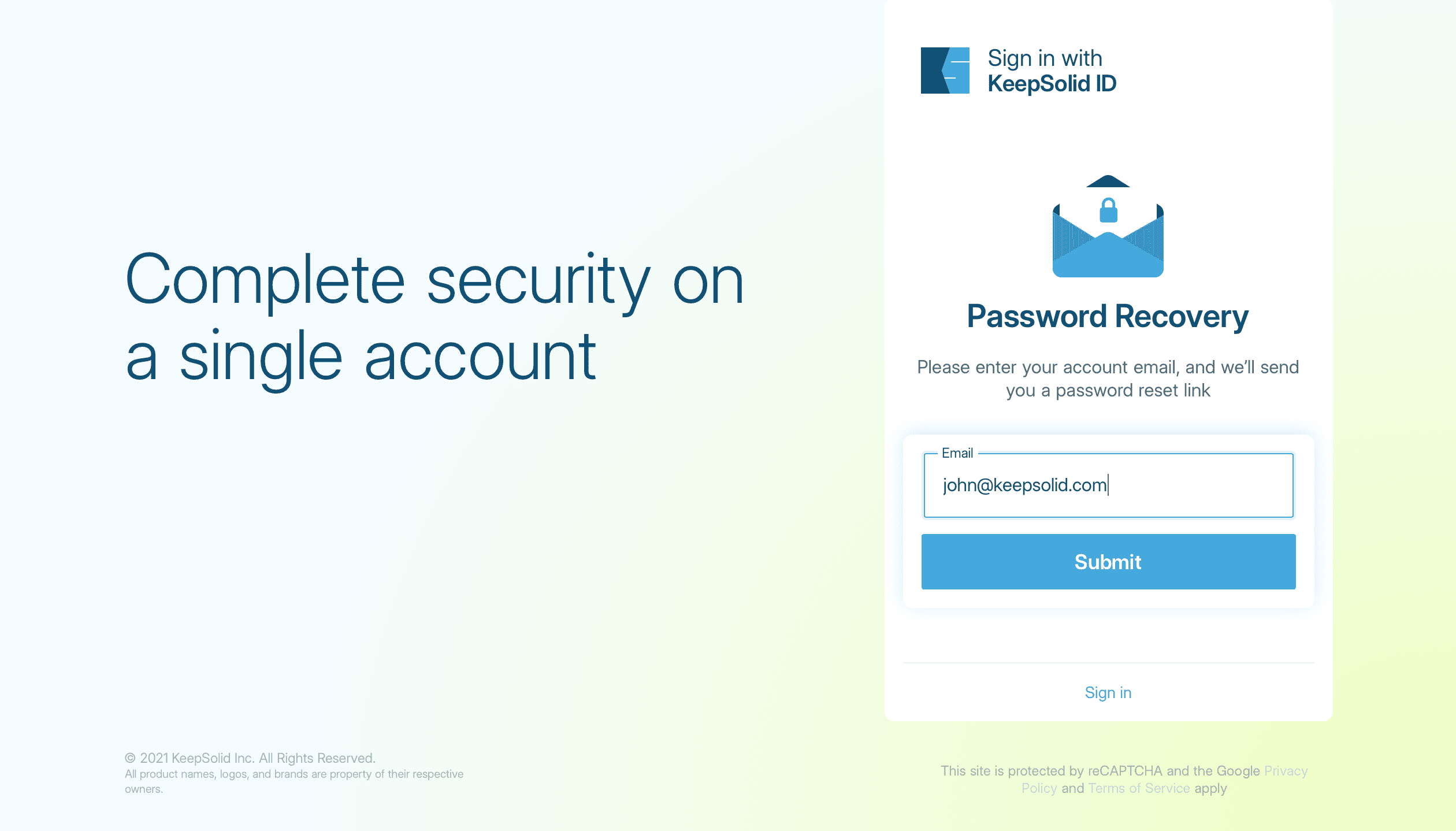 2. Введите ваш адрес электронной почты и нажмите Submit (Отправить).
